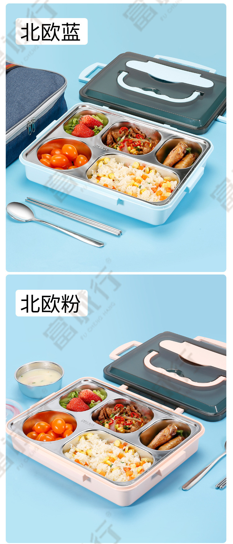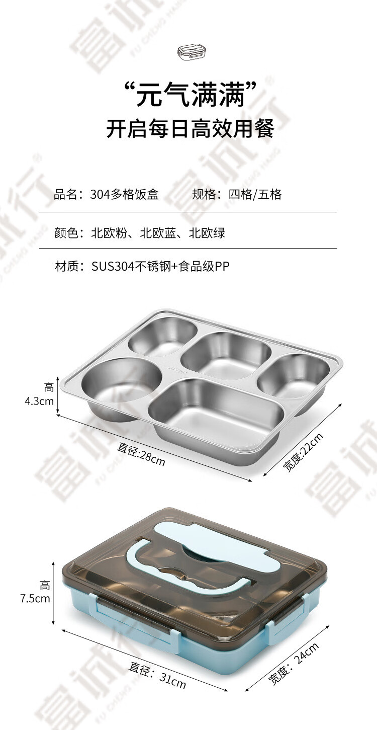 商品名称:【精选】富诚行 304不锈钢保温饭盒餐盒 北欧粉 四格