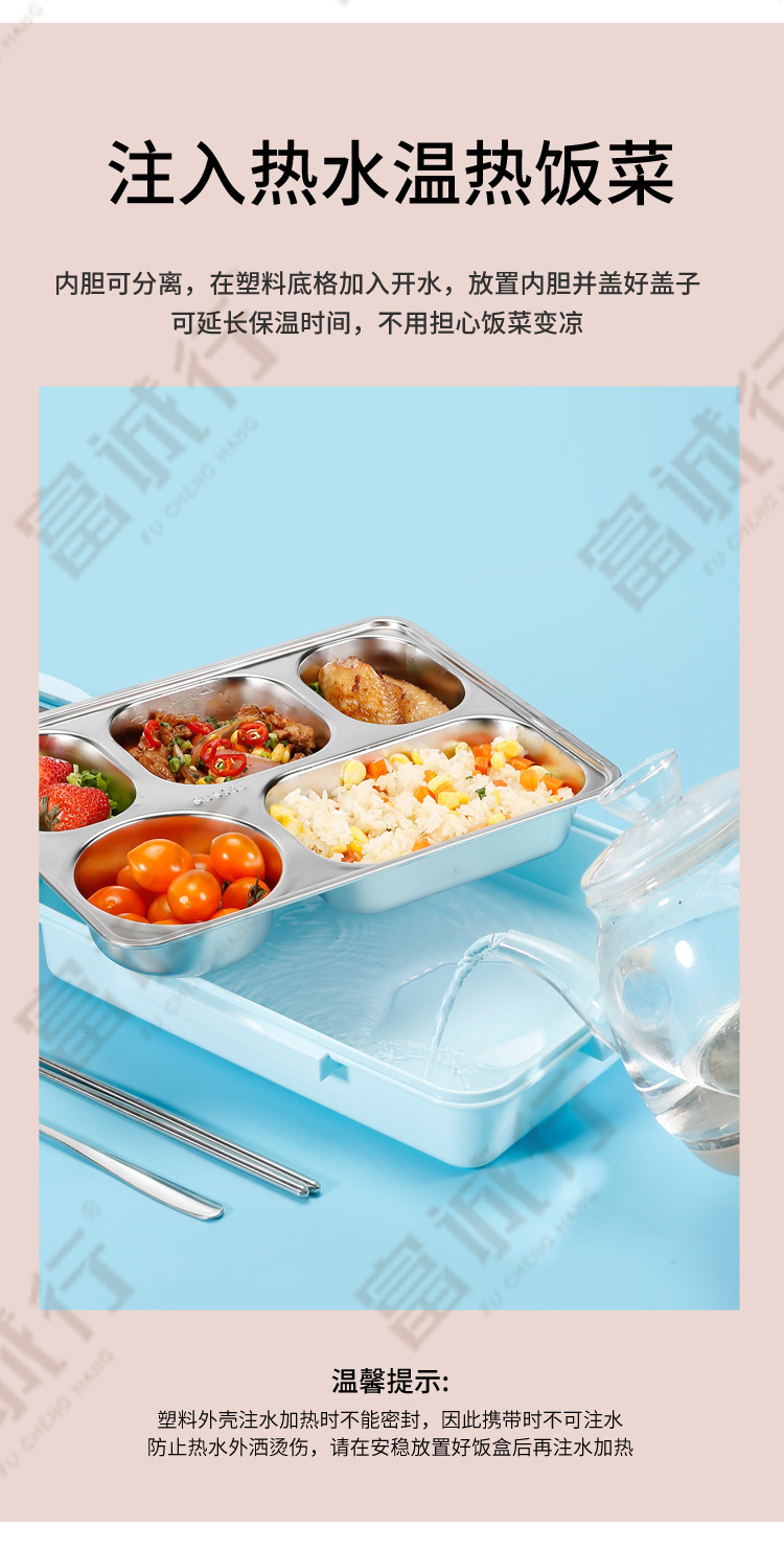 商品名称:【精选】富诚行 304不锈钢保温饭盒餐盒 北欧粉 五格