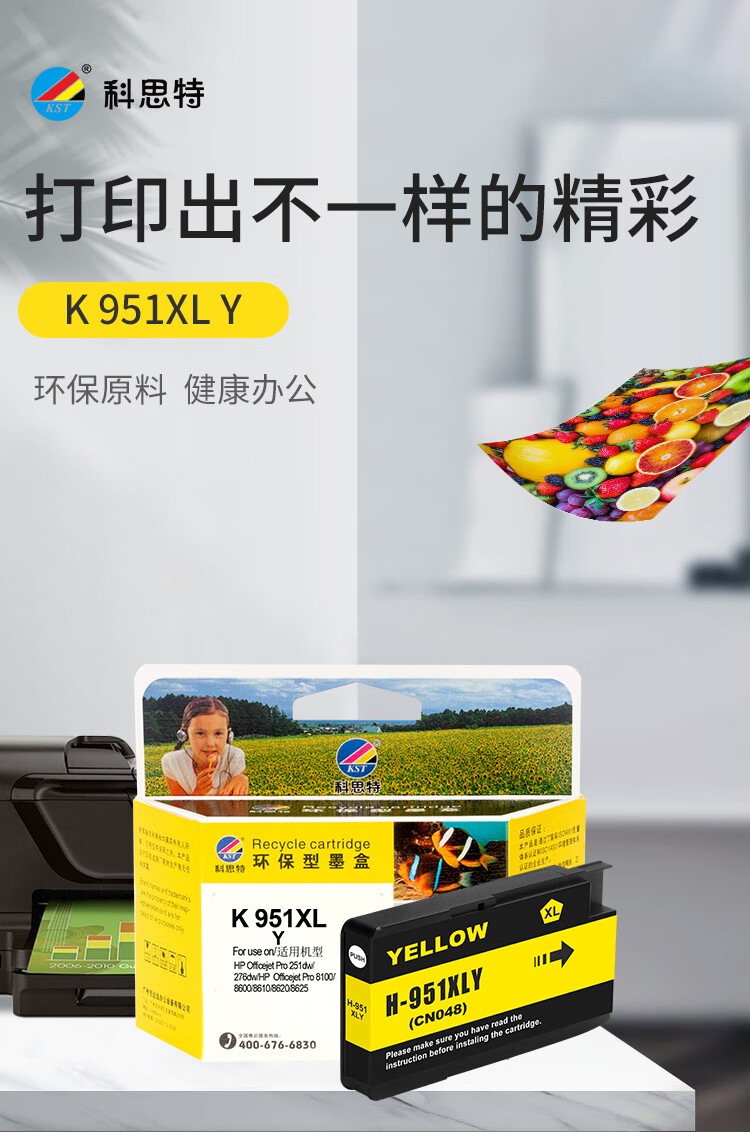 商品名称:【精选】科思特(KST) 951XL 适用HP Officejet Pro 8100 8600 Plus 墨盒 黄色 (计价单位:个)