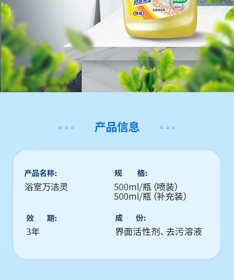 商品名称:【精选】花王 浴室万洁灵 柠檬芬芳 500ml/瓶(喷装) (计价单位:瓶)