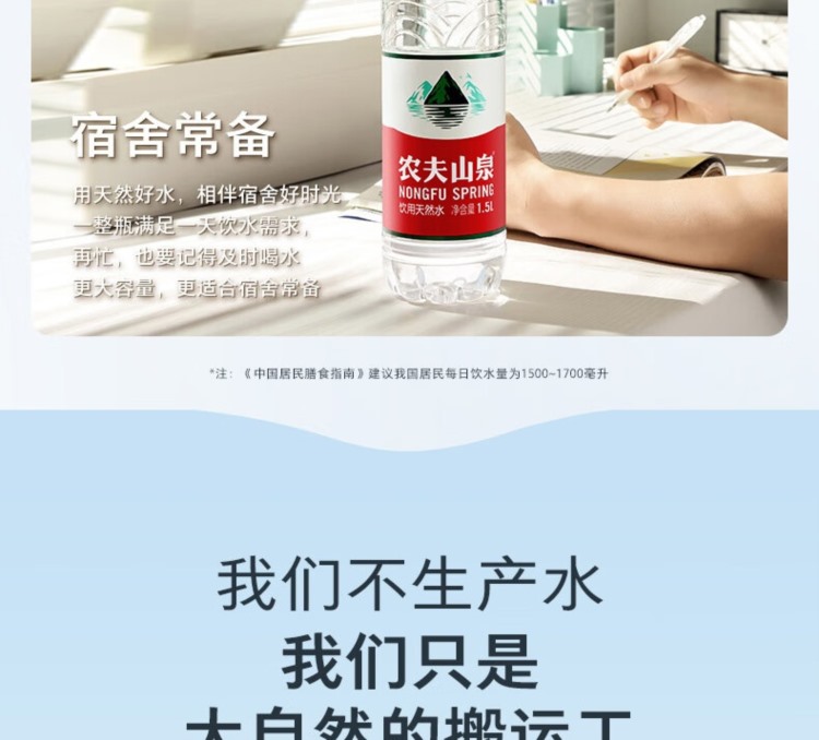 商品名称:【精选】农夫山泉(GBHX)饮用水天然水天然红盖水桶装水1.5L*12瓶