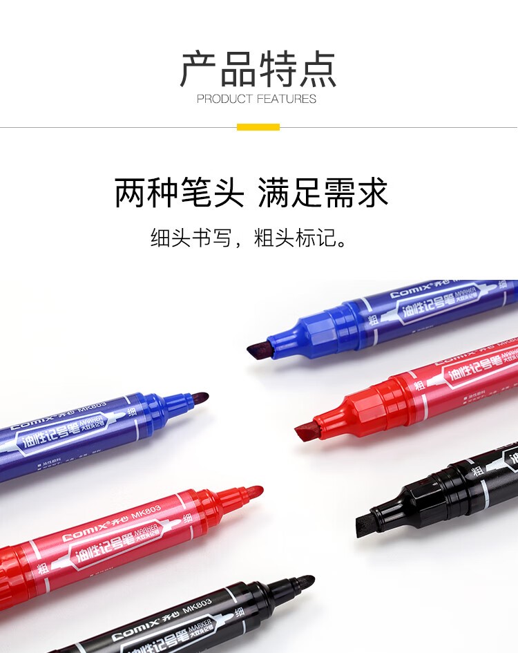 商品名称:【精选】齐心(Comix) MK803 大双头记号笔 10支装 红色(单位:盒)