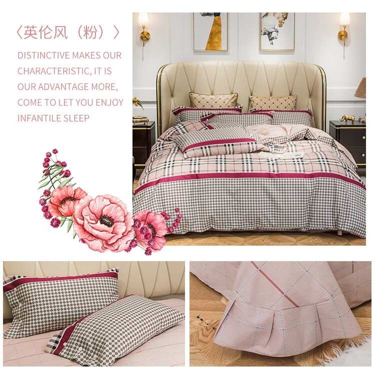 商品名称:【精选】伊伊爱TJ0HJ02000325英伦风纯棉四件套200*230cm(套)