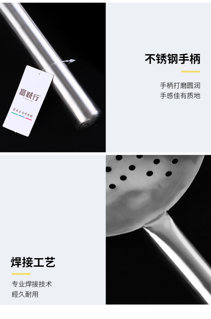 商品名称:【精选】富诚行(GBHX)不锈钢1.2厚钢柄漏壳 直径30cm 计价单位:个