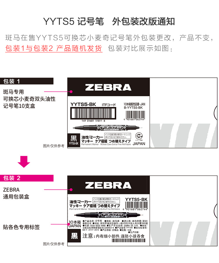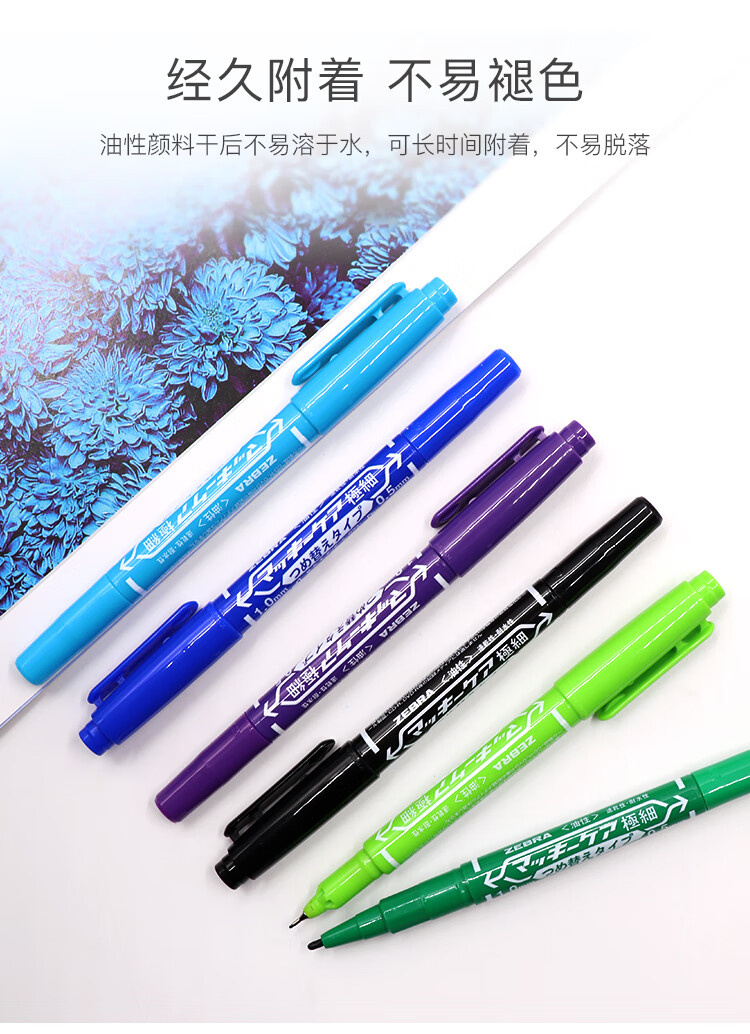 商品名称:【精选】斑马 小双头记号笔 YYTS5-BK 0.5mm 1.0-1.3mm 不可加墨 双头 10支/盒 黑色