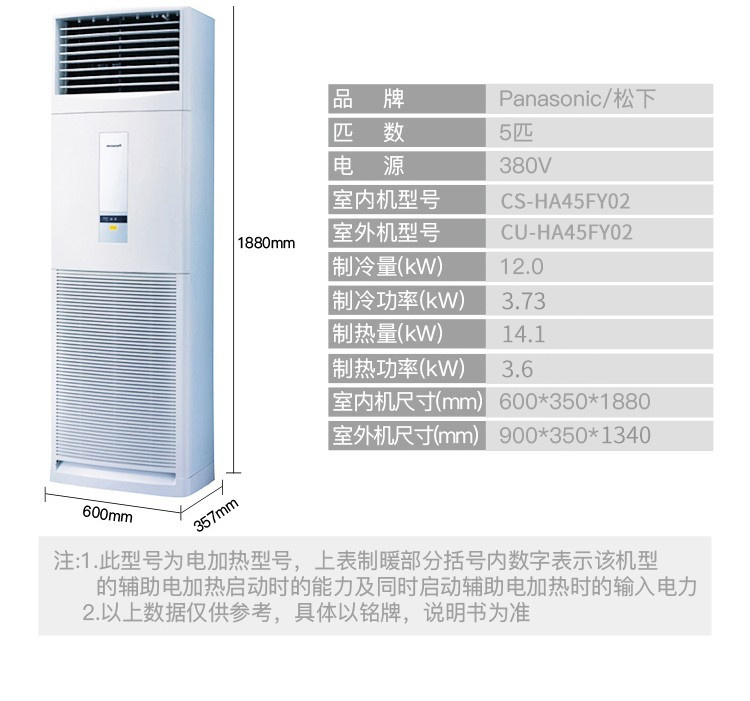 商品名称:【精选】松下(Panasonic) 5匹立柜式单冷空调 HC45FY02 强速制冷380V