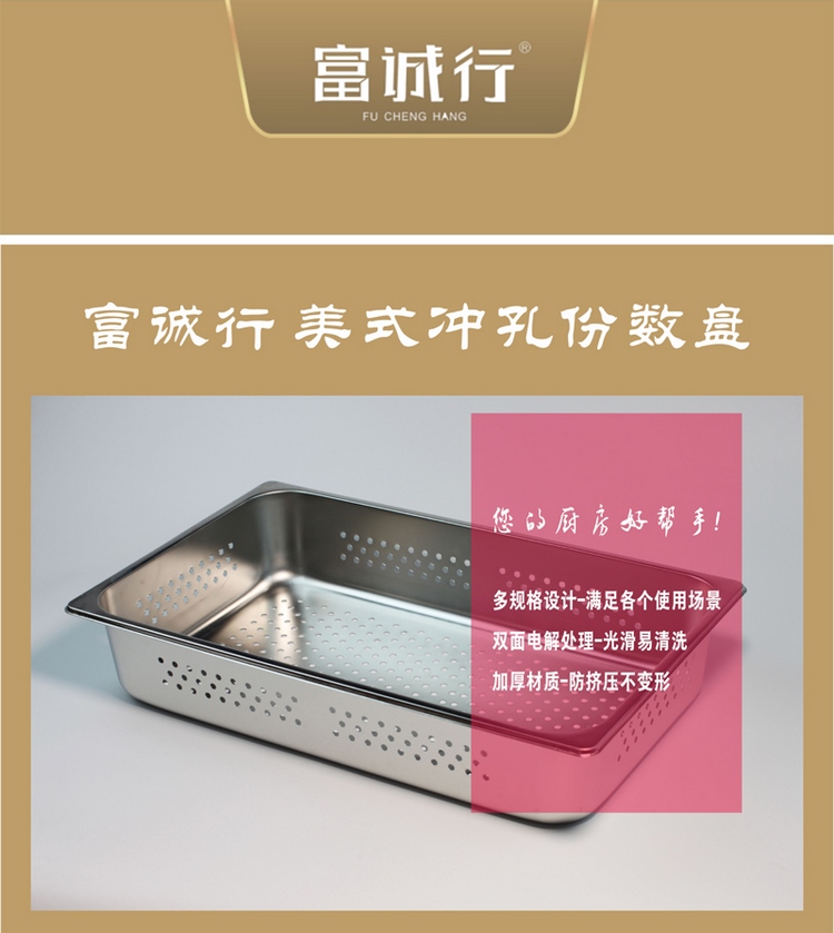 【精选】富诚行 1/1-10(GBHX)份数盘 美式冲孔 方形 不锈钢 52.5*32.5*10cm 计价单位:个