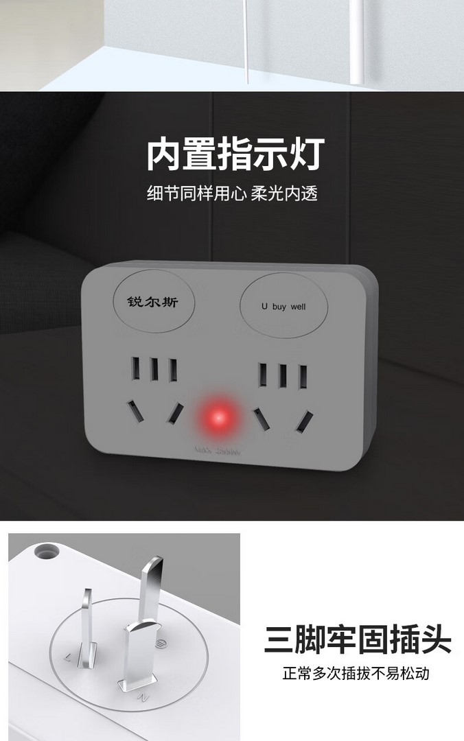 商品名称:【精选】锐尔斯 9132C 无线插排插座三角插头转换器 一转三 总控 (计价单位:个)