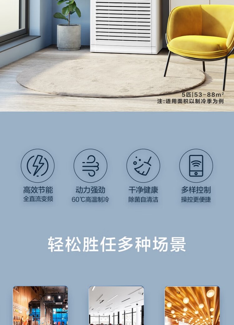 商品名称:【精选】海尔(Haier) KFRd-120LW/50BAC13 5匹 空调 (计价单位:台) 3d送风断电记忆380V 定频冷暖 白色