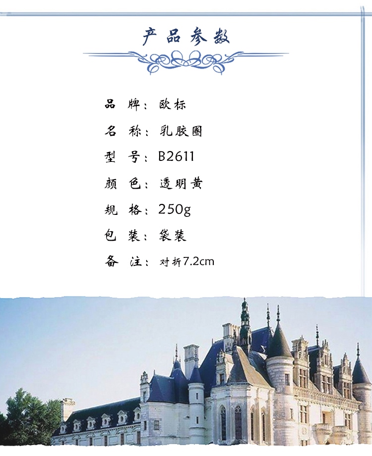商品名称:【精选】欧标 B2613 橡胶圈 250G 对折6.3cm(计价单位:袋) 黄色