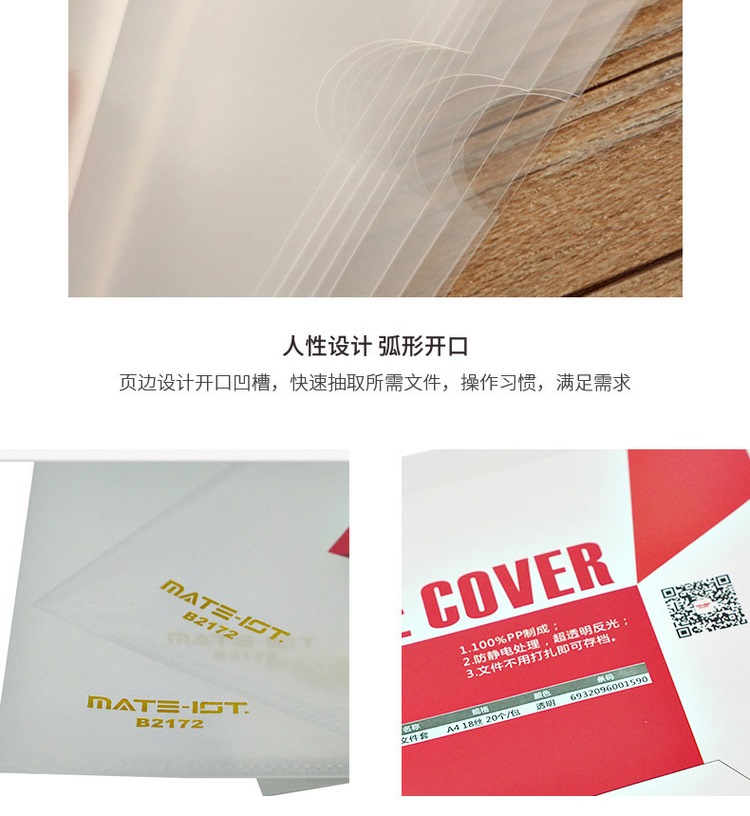 商品名称:【精选】欧标 文件套 B2172 A4 18C PP料 20个/包 透明色