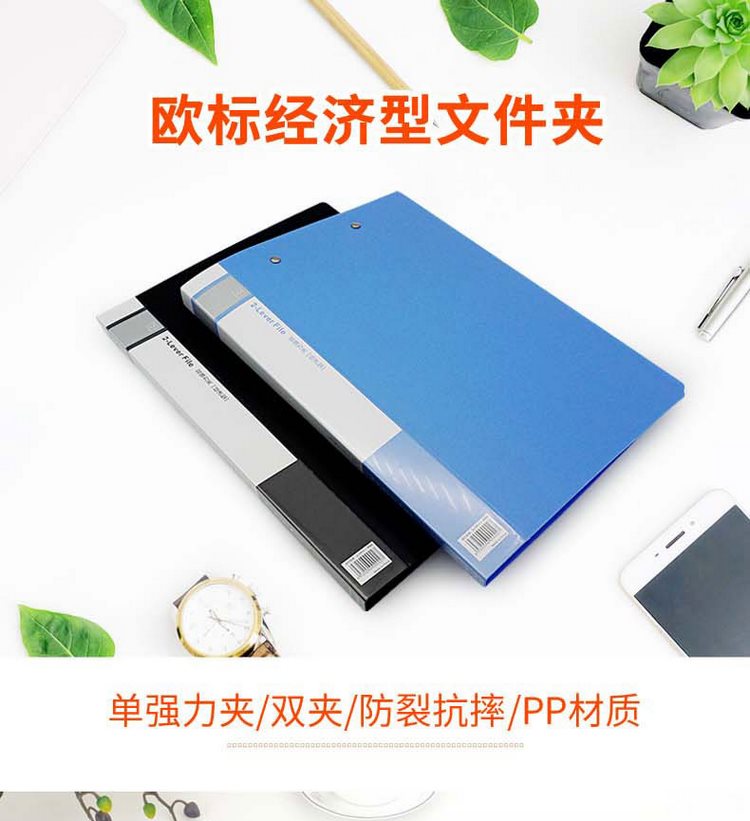 【精选】欧标 经济型双强力夹 B1923 A4 背宽18mm 48.7*31cm PP料 蓝色 蓝色 背宽18MM