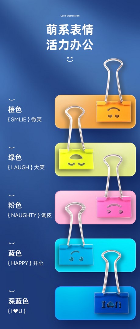 商品名称:【精选】晨光 M&G 微笑表情长尾夹 ABS92703 25mm 48个/筒 48筒/箱
