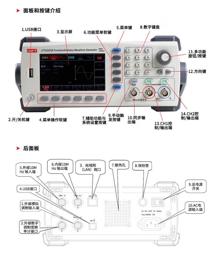 【精选】优利德(UNI-T) UTG2025A 25MHz的正弦波输出 函数/任意 波形发生器 (计价单位:台) 标配等性能双通道 8k点任意波存储器 丰富的调制 4.3寸高分辨率TFT彩色液晶显示