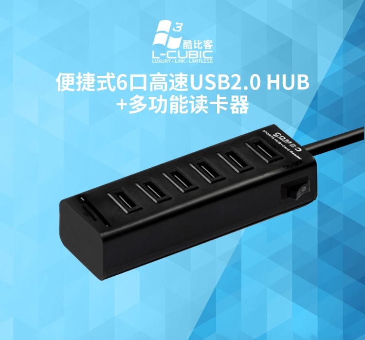商品名称:【精选】酷比客 L-CUBIC USB集线器 LCHC14BK 6口 USB3.0 (黑色) 带读卡器