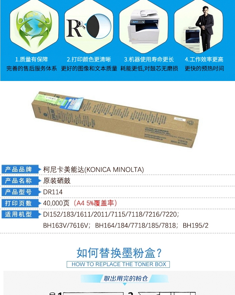 商品名称:【精选】柯尼卡美能达 复印机硒鼓 DR114 适用于163 211 220 7616 7621/7622 黑色