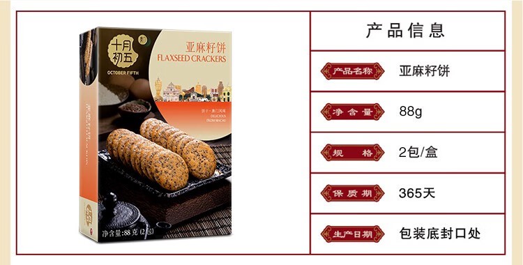 商品名称:【精选】十月初五(GBHX) 亚麻籽饼 82g下午茶休闲零食饼干 单位:盒