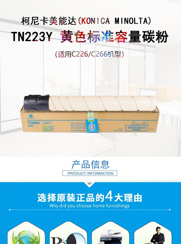 商品名称:【精选】柯尼卡美能达 复印机碳粉 TN223Y 黄色 小容量 118g