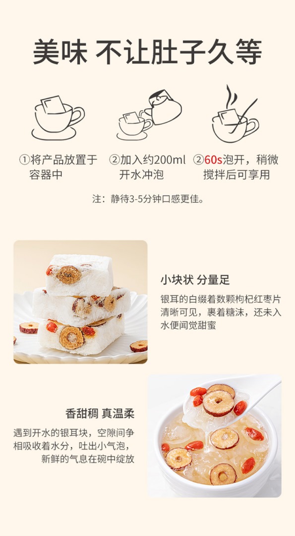 商品名称:【精选】方家铺子 冻干红枣枸杞银耳汤 15g*6 (计价单位:盒)