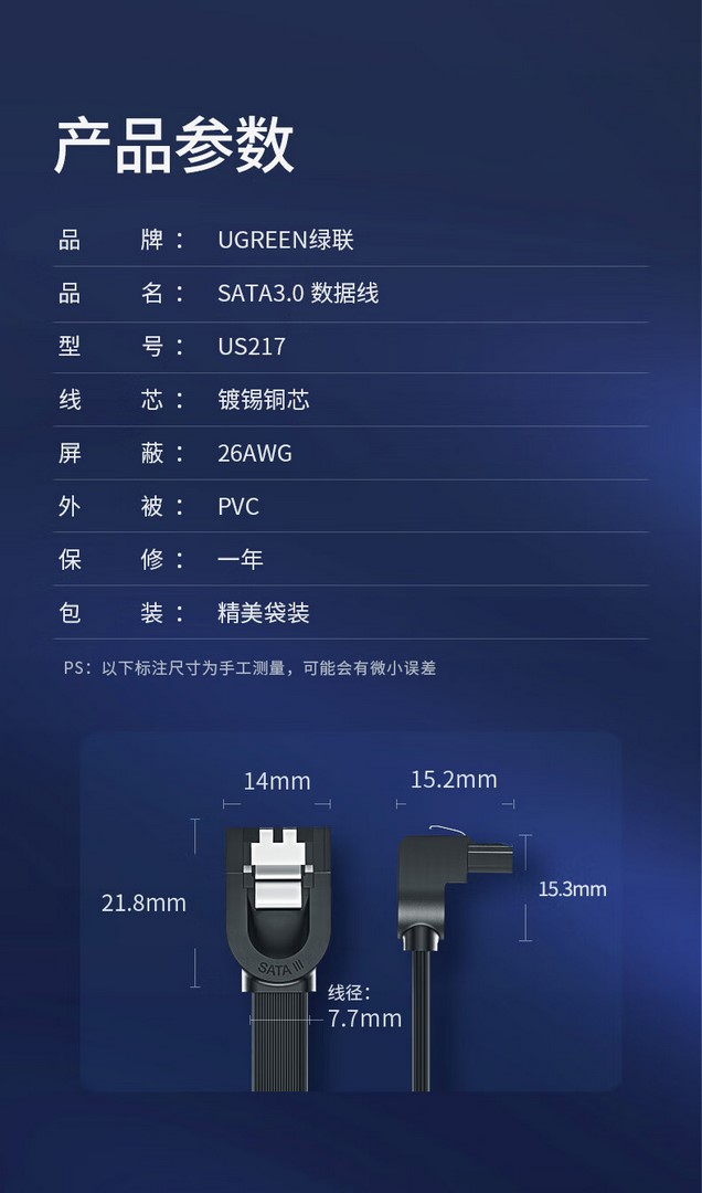 商品名称:【精选】绿联 UGREEN 硬盘数据线 30796 高速SATA3.0连接线 直头 0.5米